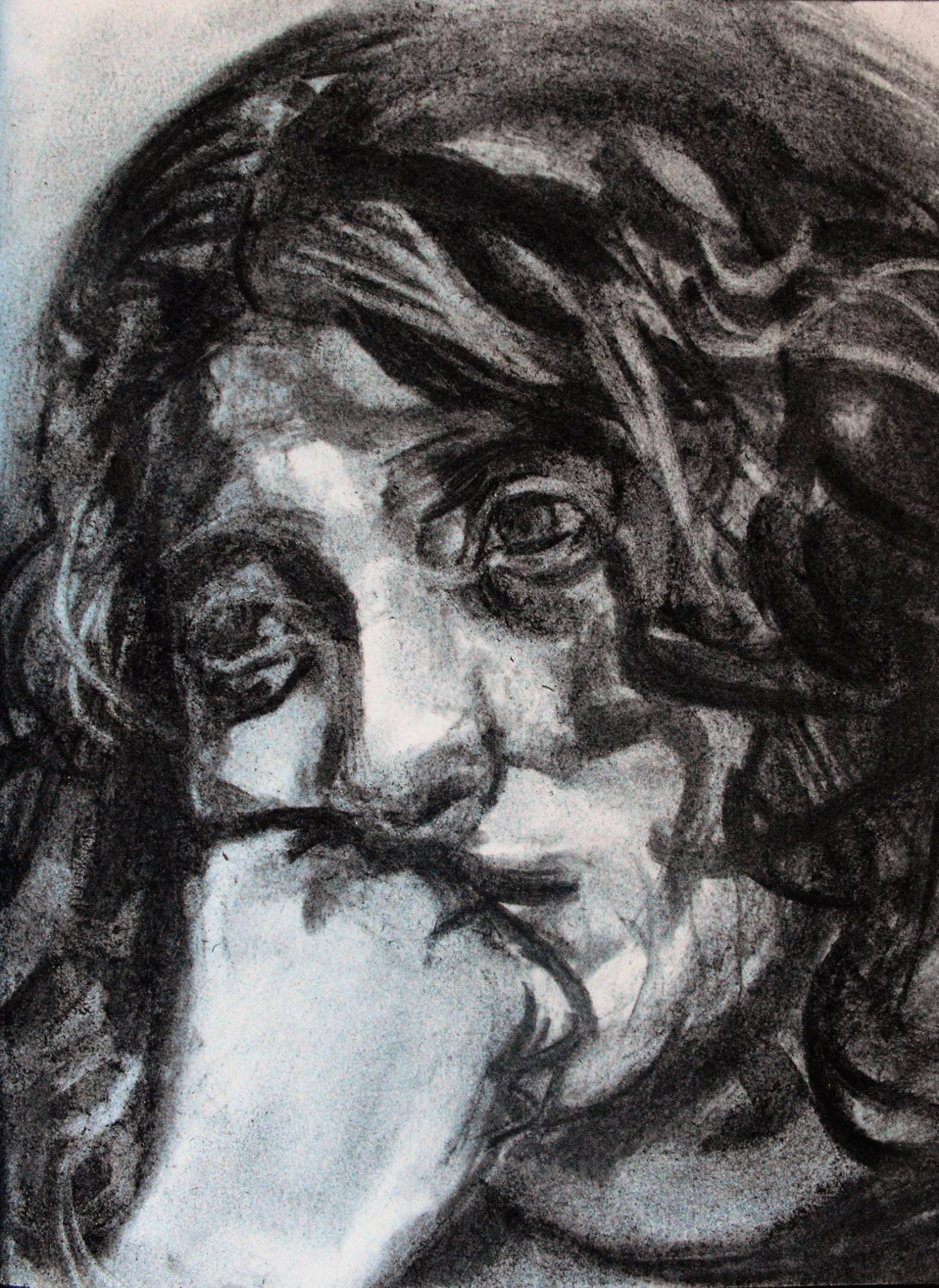 Η ‘Αννα, η φίλη μου από την Ισπανία – το πρώτο σκίτσο / Ana, my friend from Spain – the first sketch / Spanyol barátnőm, Ana – első vázlat, circa 30 cm x 25 cm, charcoal on paper, 2015, Rethymno, Greece